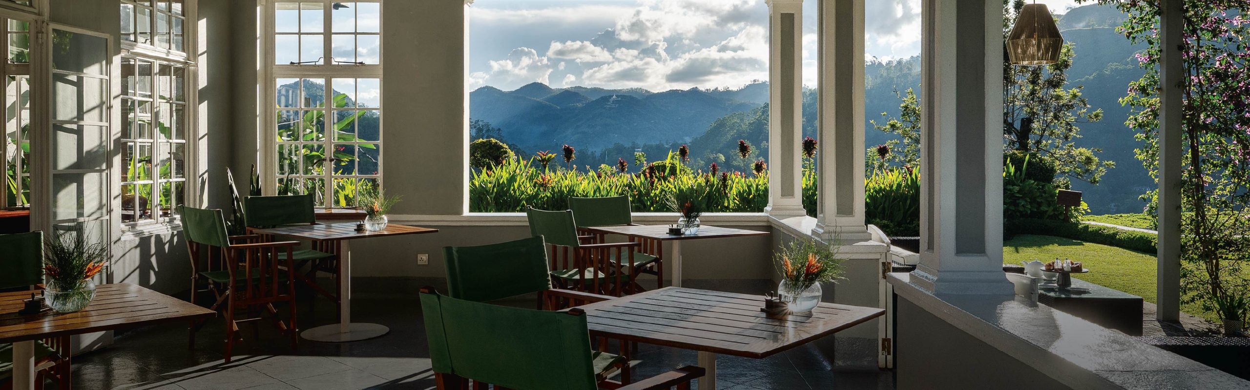 An unforgettable dining experience at our atmospheric veranda, overlooking tropical landscaped gardens