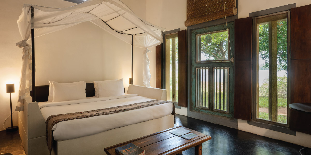 Our largest bedroom used to house Bawa’s art collection, and is privately located near a courtyard, perfect for honeymooners.