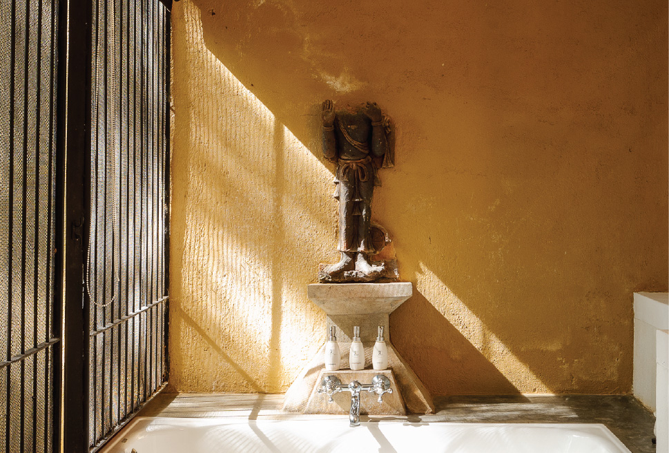 Formerly Ena’s husband’s bedroom, this light-bathed suite dressed in colonial-era furnishings looks down at the central courtyard.