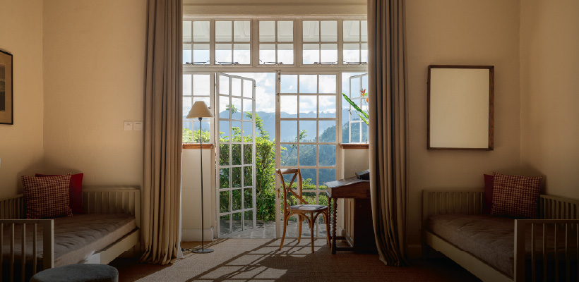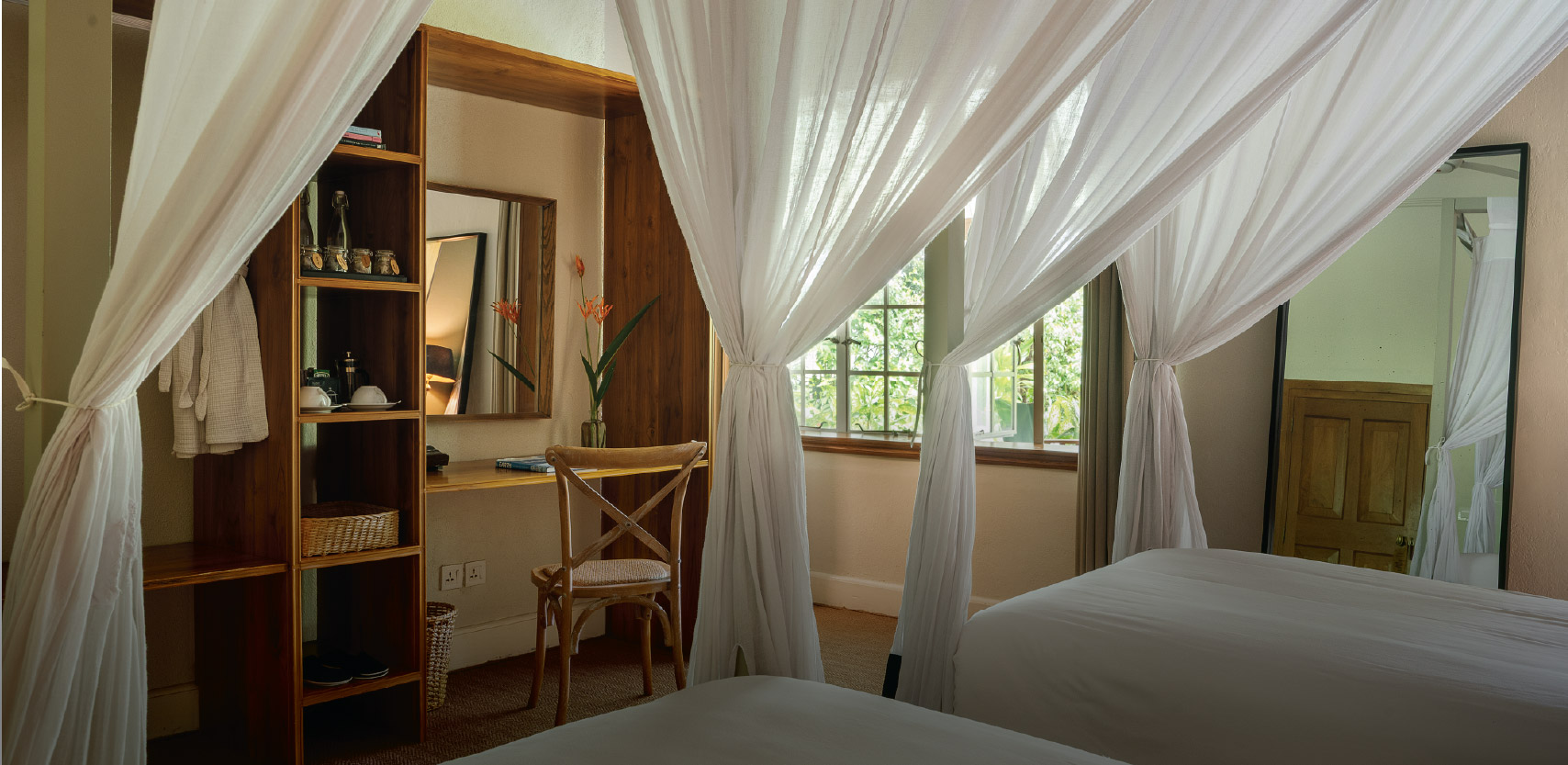 Each of our three Demodara bedrooms are unique in style and layout yet have the same luxuries including armchairs, tables, wardrobes, air conditioning, and ensuite bathrooms with bathtubs. One of the bedrooms has the option of being connected with the neighbouring twin bedroom, to make a Family Suite.